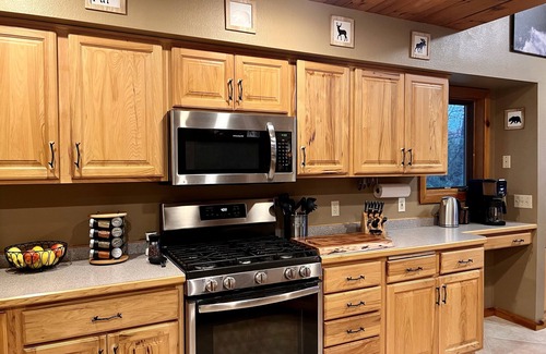 KITCHEN: Fully Equipped, Drip + K-Cup Ninja Coffee Maker, Dishwasher, Bar Seating, Refrigerator, Gas Stove/Oven, Microwave, Toaster Oven/Air-Fryer