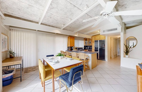 Nestled amidst all of Palm Desert's charm, you'll discover this modern beauty! Here, vacation is surrounded by palms and shrouded in sunlight. Spend time with your favorite people in the open-concept interior, amidst comfortable furnishings, a well-equipped kitchen, and a pleasant color palette. Rest assured that with the soft linens and hints of tropic living available in both bedrooms, everyone is guaranteed a good night's rest. Additional interior perks include a newly renovated main bathroom, central air-conditioning, and a private washer/dryer.
