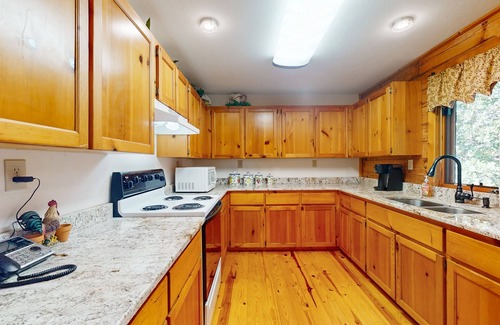 This multi-level cabin features a well-equipped kitchen with modern appliances. Enjoy your morning coffee on the deck or balcony while taking in the picturesque surroundings. Stay entertained with cable TV, DVD player, Netflix streaming, and free WiFi.