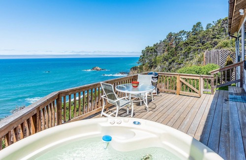 Dog-friendly, ocean-view cottage with private hot tub, deck, & free EV charger is located in Gualala. Dog-friendly, ocean-view cottage with private hot tub, deck, & free EV charger provides accommodation, featuring Balcony/Terrace, Oceanfront, Air Conditioner, among other amenities. This Cottage features Balcony/Terrace, Oceanfront, Air Conditioner, to make your stay a comfortable one.