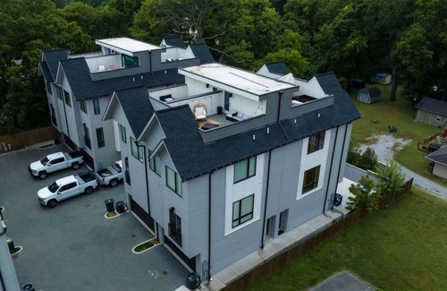 This is exactly where you’ll find Dolly’s Disco, where all the glitz and glamour of the trendy Nashville scene blend seamlessly with the peace and privacy of suburban living. Days begin and end up on the spacious rooftop deck, where you can sip on your morning coffee or an afternoon cocktail while soaking up the plentiful sunshine or gather around the firepit for an evening of toasted treats under the stars.