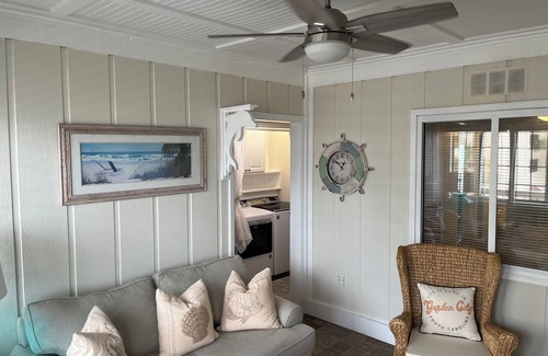 Dolphin Watch ****Special 2 Night Minimum September 1st thru May,24 2026 @ $199 per night, Pick your days (2 consecutive) 3:30pm Check in & 10am Check out applies*. There after "our" Normal in Season rates apply with 3 night Minimum with check in at 3:30 PM with check out by 10 AM. Condo 203 has a Master with full Bath and Ocean view, there are 2 Additional Bedrooms with a shared full Bath and a half bath in one of the Bedrooms. The Balcony is great for Dolphin watching. Walk down two flights and BEACH access is right there! The ocean waves and sand await. Enjoy this 3 bedroom, 2.5 bath condo with incredible cottage- like vibe. Guests can watch TV, or relax in the in the Carolina room with a new fireplace or living room area. All bedrooms have TV's .Cook or serve drinks from the galley kitchen to guests at the counter or table (seats 6). We supply bed sheets , bath towels and BEACH towels. updated appliances including a washer and dryer for your own laundry needs. NO ELEVATOR or POOL. ( Get exercise and swim in the Atlantic Ocean.). We are located right next to Public Beach Access 10. So many activities in addition to the BEACH - see our in-condo welcome guide for further info.
