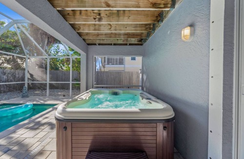 Ultimate coastal escape in this spacious 5 Bed/3Ba Villa with direct deeded beach access. Relax in the heated salt water pool or unwind in the jacuzzi after a day of seaside adventures.