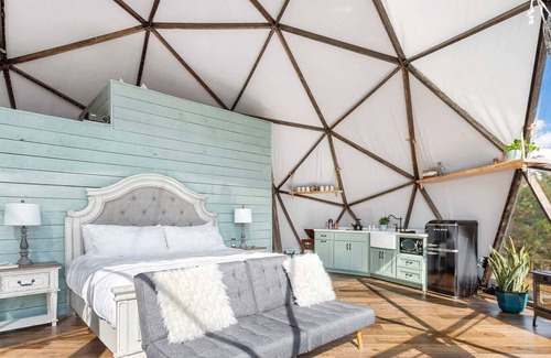 Reconnect, laugh, and lose track of time on top of the world in a magical, inspiring, socially distanced environment that is guaranteed to lift everyone’s spirit and create cherished memories that will last a lifetime! Enjoy 1,500 square feet of private space (dome + terrace + fire pit) and breathtaking mountaintop views from this impressive, Instagrammable, luxury geodesic dome! XL Domes have their own section of the mountain and feature our best views, additional queen-size loft bed, larger hot tub, and more space..LIVE LIKE KINGS & QUEENS while being immersed in nature and surrounded by luxury amenities: stargaze in the hot tub, shower under the stars, roast s’mores, play antique board games, enjoy popcorn + movie night, blazing fast internet, BBQ grill, pizza oven, and furnished kitchenette. Wake up in the clouds to the relaxing sounds of songbirds and savor magical mornings in luxurious robes after waking up refreshed from the best sleep of your life. Journal, read, dream, and enjoy the art of slow living with french-press coffee and breakfast with million-dollar views. Then, PLAY LIKE KIDS in Chattanooga’s nature playground: scenic hikes, waterfalls, horseback riding, ATV tours, paragliding, paddleboarding, kayaking, fishing, cruise the Tennessee River on a pontoon, and fill your lungs with fresh mountain air.