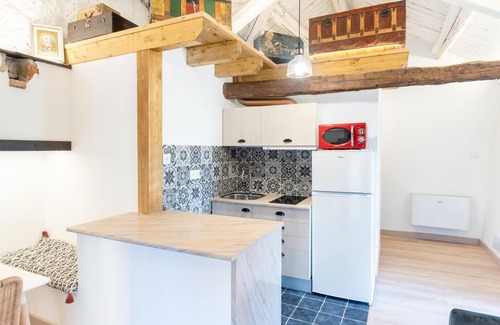 Domus Aurea Suite is a project for the rehabilitation of a house from the year 1900, according to current energy and comfort standards. A loft with high ceilings and exposed beams, bright and large windows, which has a kitchenette with a sofa bed, fully equipped (ceramic hob, microwave, washing machine, dishwasher, coffee maker, toaster and all the necessary utensils). The double bedroom is a simple space where architecture takes center stage, creating an intimate and cozy atmosphere. Bathroom equipped with shower tray. The apartment is equipped with both heating and cooling by means of aerothermal energy. Enjoy the tranquility and a decoration that is carefully detailed but respectful of tradition.