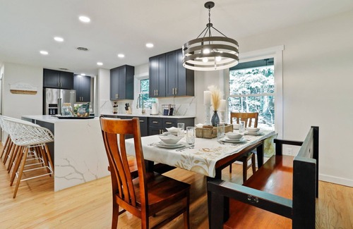 🧂Open concept family room with fireplace, chefs kitchen, and eat in kitchen with table to seat 8. Bar to seat 4