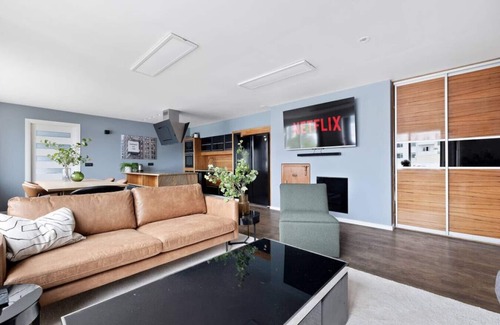 It is fully equipped with stainless-steel cooking appliances that make it suitable for preparing any meal, whether a simple breakfast, quick snack or a three-course gourmet dinner. Spacious quartz countertops and a central kitchen island provide plenty of room to work your MasterChef magic.