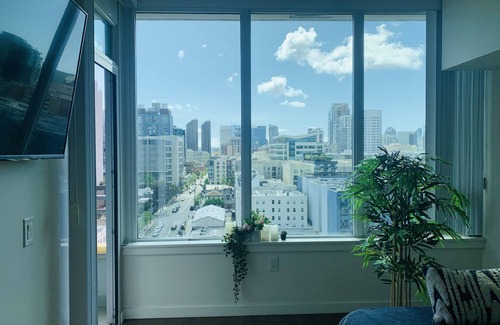 Downtown apartment with great views. Located within walking distance to grocery stores, Gaslamp district, Seaport Village and Petco Park. Amenities include pool, hot tub and a gym. The building also has a 24-hour concierge.