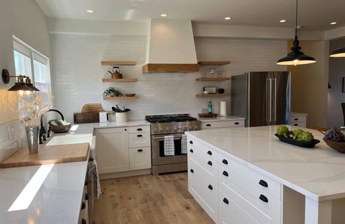 Stunning new 3 bedroom/2 bath flat with private deck and patio. Located just a block from the main plaza, in a fun and lively section of Arcata. Next door to Salt Restaurant and just steps away from countless other restaurants, the Arcata Co-op natural food store and shopping. Park in our private parking lot then walk everywhere from this wonderful location with a walk score of 96! Enjoy this spacious 2000 square foot flat with private outdoor space in the center of Arcata. Enjoy this three bedroom flat with two full baths and an open concept living, dining and kitchen area. Private parking for guests, a shared outdoor common area, your own private entry off I Street; as well as a private sunny deck off the master bedroom and a patio with separate entrance off the dining room. You will fall in love with this kitchen. It has everything you need to enjoy cooking, baking and dining with friends and family with its large island, quartz counters and 36 inch commercial style range. Cozy up to the beautiful gas fireplace or share a movie or sporting event on the large tv in the living room. There will be plenty of space at your table in this spacious dining room with buffet that opens to your private patio and cafe table dining. All bedrooms have been thoughtfully designed with comfort in mind, each boasts a california king bed, closets and seating area. Flat, private fenced deck area, private patio, shared sideyard, parking lot. We respect guests privacy but are always available quickly for guest needs as our home is about 10 blocks away. We are very responsive hosts and always happy to provide recommendations for places to go, restaurants, beaches etc. Fun and lively section of town, a block from main plaza, next door to Salt Restaurant, across street from Arcata Co-Op. Gated and secure; all apartments are behind locked gates accessed with a code. Private parking lot for guests behind our building. Lots of lighting and motion lighting in our parking lot. Walk everywhere, our flat has a walk score of 96. Park in our private parking lot, two parking spaces for this flat. Cal Poly Humboldt is a 10-15 minute walk, as are the Arcata Marsh and Redwood Park. We have tankless water heaters for unlimited hot water, rain shower heads, and very strong water pressure so much so many guests comment on how nice the showers are.