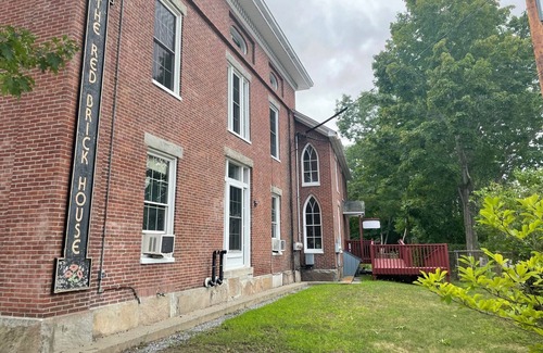 Furnished apartment at historic Red Brick House on Pleasant Street in Brunswick, ME. 4 bedrooms and 2 full baths. Located only 2 blocks from Maine Street and walking distance to shopping, dining, a grocery store and Bowdoin College. Newly updated kitchen cabinets and counters. Apt is located on the 2nd floor with additional 2 bedrooms on the 3rd floor of the building access by spiral staircase. Tall ceilings, bright sunlit rooms and comfortably furnished. Includes backyard with a picnic table, off-street parking and a bike rack. There is a common entry area shared with adjacent apartment offering cubbies, storage, washer, dryer and folding area. WIFI throughout.