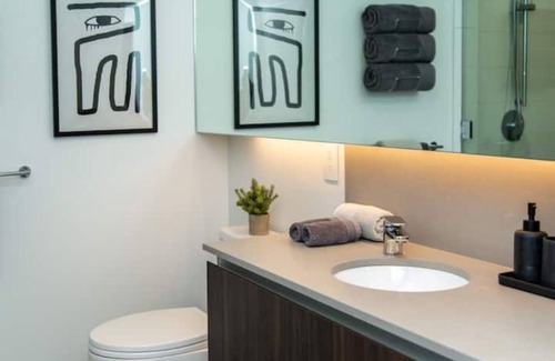Incredible views await you at our DTLA apt! Just ride share in from the airport, this apt is central to the best restaurants, bars, shopping, and all the entertainment you could want.