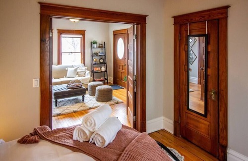Enjoy the privacy of your own space in this newly renovated Historic Cedar Rapids home, locally known as the Kurik House. This unit is on first floor of the house and is wheelchair accessible. There are 2 dedicated parking spots and an additional disabled parking spot. Roadside and parking lots are options for additional cars, trailers, etc. Be sure to read the history of this house in the living room.