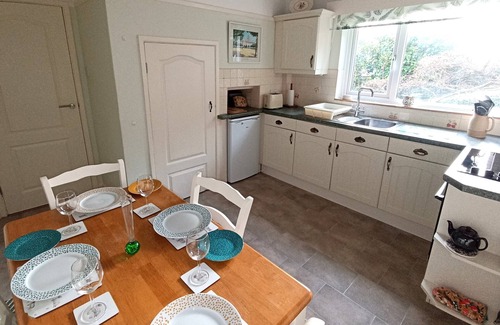 Amenities: Full gas central heating with electric wood effect stove. Electric oven and hob, microwave with grill, fridge with ice box, cafetiere, washing machine, iron and ironing board. Smart TV, DVD Player and WiFi. Fuel and power inc. in rent. Bed linen and towels inc. in rent. Off-road parking for 2 cars. Front patio with garden furniture. Sorry, no pets and no smoking. Shop and pub 0.5 miles, beach 0.4 miles. Note: There is additional storage for bikes and other equipment in the garage. Note: No children under 8 years old.