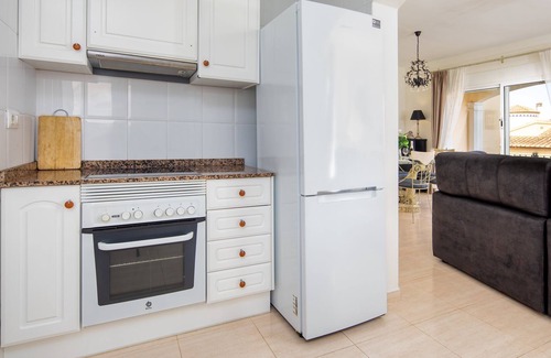 The house has 3 bedrooms and 2 bathrooms, distributed over 2 floors. The accommodation offers a communal garden with pool, views of the golf course, the mountains, the street and other buildings. The vicinity of places to shop, sports activities and places to go out makes this a fine holiday home to spend your holidays in Spain with family or friends.