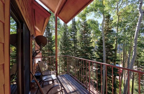 The deck provides plenty of room to sit outside & enjoy spectacular views of the slopes & watch the sunset or look at the stars.