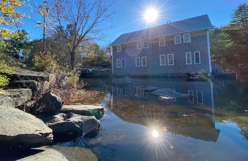 Damariscotta Mills is a historic little community on the outskirts of Newcastle and Damariscotta. It is adorned with historic architecture and the iconic Alewives fish ladder. There is a one way road and the speed limit is 15 MPH in front of the house. The area is a popular swimming destination for kids and adults that enjoy jumping off the bridge or splashing on the beach.