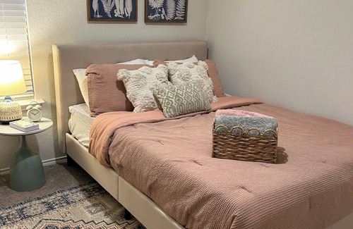 Welcome to the Ranch! Here we provide you with a space to eat, play and rest. This “Cozy Boho” room is the perfect get away or workspace. In addition to have having a private room and shared bathroom(across hall) Redbird Ranch has many things to offer.