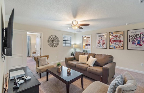 ChampionsGate Resort Vacation Pool Home - includes resort clubhouse amenity access Our 8 bedroom 5 bathroom private vacation pool home is a great option for families wanting a home base to enjoy the best of all that Central Florida has to offer ChampionsGate Resort Private Pool Home Sleeps up to 16 8 bedrooms 5 bathrooms Private Pool w Spa - North Facing Game Room including Air Hockey Basketball and Foosball Upstairs Loft with Pool Table ChampionsGate Resort Gated Community 10 miles to Disney World property Fully equipped Kitchen with seating for 8 at the dining table and 5 spots at the breakfast counterBEDROOMS First Floor - Master Suite 1 - One King Bed Attached Bathroom - Master Suite 2 - One King Bed Attached Bathroom BEDROOMS Second Floor - Bedroom 3 - Two Twin Beds Shared Bathroom - Bedroom 4 - One Queen Bed - Bedroom 5 - One Queen Bed Shared Bathroom - Bedroom 6 - Two Twin Beds Shared Bathroom - Bedroom 7 - One King Bed - Bedroom 8 - Two Twin Beds Shared Bathroom Pool Spa Charges and Information There is an additional optional charge of 30 per day plus tax to heat the pool spa The spa will not warm up without the added pool heat Please note that our pools are serviced on a weekly basis Resort Parking Rules The resort allows a maximum of 5 cars or 3 large passenger vans Do not block the sidewalk or park on the street or the resort will fine you For visitors there is a maximum of 10 cars per property ChampionsGate Resort Amenity Access Included with Rental We are pleased to offer two clubhouses at Championsgate Resort- this property is located closest to the Oasis ClubhouseIt is an 8-minute walk or 2-minute drive to the Oasis clubhouse from this property address Huge resort-style pool with pool-side cabanas Exciting water slide Relaxing windy lazy river Interactive children s splash park State-of-the-art fitness center Movie theatre The Grille restaurant full-service restaurant 18-hole challenging golf course Pool-side tiki bar Playground Volleyball courtsDistances from Resort to Shopping Attractions Walt Disney World - 10 miles Universal Studios - 21 miles SeaWorld - 18 miles Orlando Airport - 30 miles Atlantic Coast Beaches - 78 miles Gulf Coast Beaches - 84 miles Publix Supermarket - 2 miles Walmart - 7 miles Dining - 2 milesWhy Choose this Rental Professionally managed to serve all your needs Management company has over 26 years of experience hosting well over 200 000 families Go straight to your rental with online email check-in 24 7 on-call maintenance No Resort Fees Free On-Site Parking Smoke-free and pet-free for your comfort Towels and linens are provided Complimentary WiFi Additional Rental items Available e g 3 4 burner BBQs cribs pack-n-plays strollers high chairs etc Our starter welcome packet supplies 2 rolls toilet paper per bathroom 2 round hotel-size bar soap per bathroom 1 hotel-size shampoo conditioner per full bathroom 1 roll paper towel 1 packet dishwasher detergent 2 trash bags size-13-gallon 1 small box laundry detergent enough for one load Garbage can liners in each bedroom bathroom small garbage cansAny supplies beyond this are up to the guest to replenish we do not restock these items No salt pepper or cleaning supplies are stocked due to safety issues This is an industry-standard practice FOR GUESTS WHO BOOK 30 NIGHTS OR LONGER STAYS this does not apply if you are staying less than 30 nights We will collect a 1 500 deposit Balance is due 60 days prior to arrivalIf canceled 90 days or more before arrival we keep with us 250 00 1 250 00 will be refunded If canceled between 61 and 89 days prior to arrival we keep with us the 1 500 00 deposit No cancellation or modification 60 days or less prior to arrival