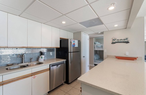 With two spacious bedrooms, including a luxurious king-sized bed and a cozy queen-sized bed, Edgewater 602 comfortably accommodates up to 10 guests. The living area features a full over full bunk bed and two convertible twin sleeper sofas, providing ample sleeping arrangements for everyone. The ambiance is bright and inviting, with large windows that fill the space with natural light and showcase breathtaking views of the ocean.