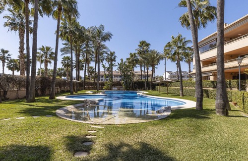 The Altamar III complex offers a beautiful swimming pool and garden area, with many tall palm trees and tropical plantations. The apartment rental includes an underground private parking space, which facilitates car entry and exit.