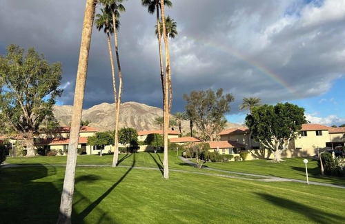 El Paseo wonderfully located condo for both scenic living and convenience to the many amenities of Deep Canyon Tennis Club. One look out the living room window will reveal a large, cooling grass front yard with beautiful distant mountain views. The downstairs has a very comfortable living room, convenient kitchen south facing, sunny patio. Out the back sliding doors and through the patio your be able to quickly walk up to the heart of the community. There you will find the Tennis Pro Shop, a Bocce Ball Court and you'll need only a short stroll right on up the the clubhouse, main swimming pool and workout room. The Clubhouse is the center of social happenings . Tennis players will enjoy a total of 12 courts. Pickleball is thriving here on 6 separate courts. Enjoy 12 pools, 4 hot tub/spas and a golf practice green as well. If you enjoy a social and recreational events, this is a great place to find it. Come look at this condo and find out how Deep Canyon life can bring more life to your life.