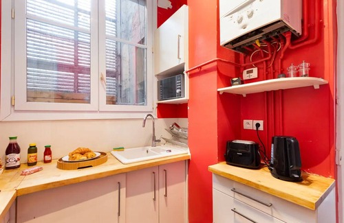 Exceptional ceiling height & brightness, spacious bedroom, plenty of storage space, very comfortable bedding, not overlooked, elegance of real parquet flooring, warm furniture & decoration, shops & transport nearby, this apartment has everything you need to have a pleasant stay.