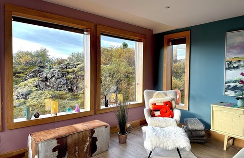 Discover this 2plus bedroom gem in Hafnarfjörður nature reserve. Stay in paradise at the city limits! This amazing house features 1 king bed, 1 queen bed, and 1 twin, perfect for a relaxing stay. Two bedrooms close, the third is an upstairs beautiful open space. The cozy house offers great amenities, a well stocked kitchen and incredible views in the elegant living room where guests can unwind after a day of exploring. The bathroom includes a hair dryer, towels, a bathtub and a separate walk in shower, and washing machine and drying racks. Our beautiful house has 360 views for breathtaking vistas of lava formations and lush green moss, situated in a protected forest reserve. Mosi House is a perfect place to enjoy the northern lights, take a peek out the 360* windows in all directions and discover the magnificent aurora! The Blue lagoon is 30 min away, 15 minutes to downtown Reykjavík, horse back riding, hiking trails and a beautiful lake 3 minutes away! Cute Hafnarfjörður waterfront and a great pool with hot tubs and saunas are 5-10 minutes from the house. The house has quality books to read and toys and books for kids. During the warmer months the garden furniture us iut on our beautiful deck nestled in the natural birch garden.The landscape in front of the deck and living room areprotected and we kindly ask our guests not to walk there so that we can protect the beautiful natural moss and vegetation that is very delicate. We look forward to sharing our wonderland with you!