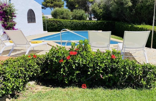 Casa Serenidad is a charming and uniquely designed villa located in a tranquil part of Binibeca, just a two-minute stroll from the picturesque fishing village and within ten minutes' walk of the beautiful sandy beach. With restaurants, bars, and local shops nearby, the property also offers convenient access to the town of Sant Lluís in just seven minutes by car, while Mahón is easily reached via the regular local bus service. The villa is ideally positioned for exploring both the southern beaches, which are just 5 to 10 minutes away, and the northern coastline, accessible within 20 minutes. The airport transfer takes approximately 15 minutes.