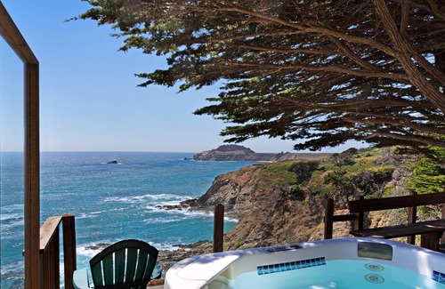 Elegantly updated home w/deck, fire pit, & private hot tub overlooking the ocean is located in Gualala. Elegantly updated home w/deck, fire pit, & private hot tub overlooking the ocean provides accommodation, featuring TV, View, Ocean View, among other amenities. This House features TV, View, Ocean View, to make your stay a comfortable one.