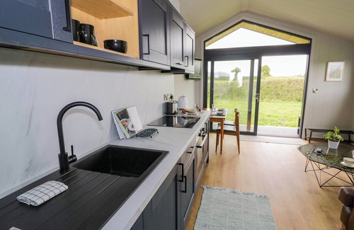 Elmside Lodge, a single-storey retreat, consists of an open-plan living space including a kitchen with electric oven and hob, fridge with ice box, and dishwasher, a dining area with seating for two, and a sitting area with Smart TV and board games. The bedroom is a double, serviced by a shower room. WiFi, fuel, power, bed linen, and towels are included in the rent. Outside, there is a non-enclosed front decking with furniture and off-road parking for one car. Please note that this is a pet-free and smoke-free home. Shop 0.6 miles, pub 0.6 miles, river 1.1 miles. Stay at Elmside Lodge for your next picture-perfect holiday in the countryside. Note: A few steps up to the property entrance, please take care. Note: Adults only.