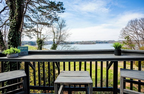 The main level features a bedroom with a Queen bed and full bath. There is an open living and dining area that look out to the large deck with a full unobstructed view of the lake over the Clemson Dike and Lake Hartwell. You can't beat Clemson Sunsets over Lake Hartwell from the large back deck. Enjoy grilling out and eating meals at the large dining table (seats 4) and pull up bar (seats 3).