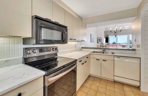 The Master highlights the spectacular Ocean View with direct access to the balcony. All living/Bedroom areas feature 14’ vaulted ceilings, large screen smart TVs and private internet. A new kitchen with stainless appliances and quartz counter tops awaits the Chef, however if cooking is not intended in your vacation plans you are minutes walking distance to a number of fantastic restaurants/bars and a brief drive to dozens more.