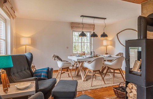 This beautiful and cozy vacation home is located in the middle of the Eider Peninsula in the direct vicinity of the UNESCO World Heritage Wadden Sea. The nicely renovated and modernly furnished vacation home offers space for 8 people and exudes a relaxed beach feeling. There are 4 bedrooms for 2 persons each. The bedroom located on the first floor has a separate bathroom as well as an additional separate access from the outside. On cooler days you can enjoy the cozy warmth of the closed fireplace (Swedish stove) in the living room. The house is also ideal for families who want to arrive with grandparents, for example, due to its accessibility on the first floor.