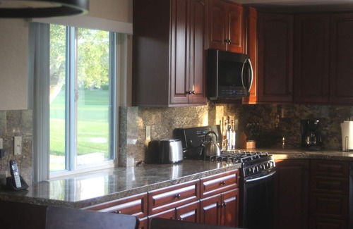 Enjoy calming golf course views from the stunning new kitchen, featuring new cabinets, granite counters, and all new stainless-steel appliances. The beautiful golf course and mountain view continues while enjoying your meals in the dining area and relaxing in the living room. Enjoy high vaulted ceilings in the kitchen, dining area, living room and master bedroom. Your time on the patio can be spent relaxing on the new furniture, grilling on the new gas barbecue, or enjoying outdoor dining, all while taking in the view of the mountains, lush golf course, lake, and fountain. Enjoy the stone gas fireplace in the living room to keep you cozy on those chilly evenings. The 55" HDTV will keep you tuned into tennis, golf, or the show of your choice with HBO, Showtime, Cinemax, etc. Entertain friends and family in the dining area with seating for 8. The flooring boasts new porcelain tile throughout except for the two freshly carpeted bedrooms and den. The master bedroom sports a new king-sized bed and 50" HDTV along with a very large closet space. The Ensuite master bathroom includes two sinks and a walk-in shower. The second bedroom has a queen bed and a 47" HDTV for additional guests. Therre is also a third bedroom which has two skylights (with retractable blackout blinds) and a 50" HDTV as well. The den also has built-in cabinets and a granite work surface providing a very stylish desk area. All of the bedrooms, and the living room have remote control ceiling fans to keep you comfortable. The guest bathroom has a combination tub/shower and a skylight to bring in natural light. The house has plenty of storage space and is fully stocked with everything you will need for a short or extended stay. You will only need food, clothing and personal items.