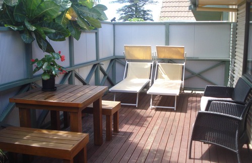 • Large, private sunny verandah with its own private BBQ, overlooking lush gardens.