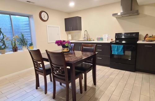 The beautiful basement has 2 bedrooms, one with a comfortable king bed and one with a nice queen bed, a living room with flat screen smart TV, a full bathroom that offers high-quality towels, a private in-site laundry room, a fully furnished kitchen, and especially a private entrance.