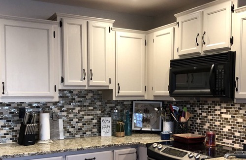Our walkout basement (4th bedroom) has been newly refinished to add an addition space to hang out and an addition bathroom with shower. This room is equipped with a 50" TV, queen size sleeper sofa, refrigerator, Keurig and microwave. The finished basement has its own entrance and is not accessible from inside the house. This is great space to send the kids or anyone else wanting their own space.
