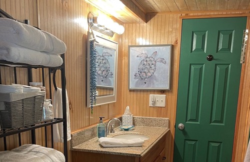 We have 4 brand new Clear Kayaks! (2 single and 2 2-person) another 2-person kayak, 1 single kayak and 1 SUP available for use by our guests. Use of our kayaks, SUP paddles and life vests are at your own risk and are subject to replacement for loss or damage. The river is spring-fed and crystal clear right from our dock and maintains a steady 72-74 degrees year-round. Swim and fish off the dock, sit and watch the turtles and manatee swim by, or the mullet jump. Please exercise caution as you use the river and be aware of high/low tides.