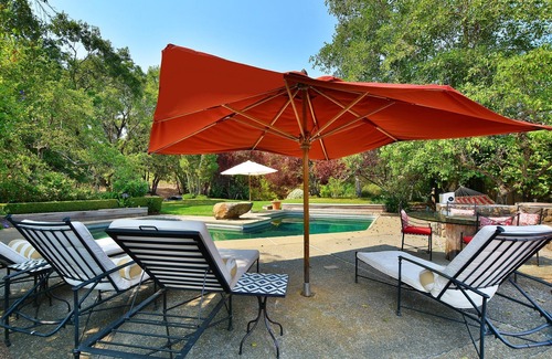 Aside from being a really special place perched on top of Spring Mountain, the house has many amenities. There is a pool (not heated or fenced in with no safety cover), hot tub & sprawling lawns with a croquet & bocce ball set. There's an outdoor gas grill on the front wrap around deck with extraordinary views of the valley floor. 3+ outdoor seating areas to eat or lounge. Inside of the house there's a fire place and a gourmet kitchen with all the kitchen devices you could want. The main house has 4 bedrooms & 4.5 bathrooms- 3 bedrooms have en suite bathrooms (1 king & 2 queens) and the one bedroom with two full sized alcove beds has its own bathroom across the hall. All bedrooms are sodas apart for privacy. The house sleeps 8 people max. There's also a pool house that can be rented for extra that sleeps an additional 2 guests if you want to bring more than 8 guests. Prices have been reduced from $1200/night because while the house is glorious and charming, she hasn’t been remodeled in 30 years. If you want a brand new property, this is not the vibe for you.