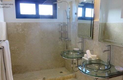 The spectacular, unobstructed view of the Atlantic spreading out far below, visible from each of the three air-conditioned bedrooms (each with a queen-size bed 160*190), as well as from the kitchen, from the private pool and from the rooftop terrace is intoxicating.