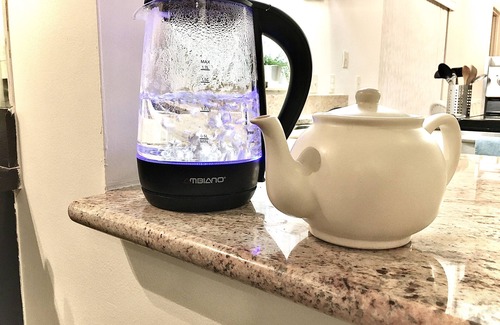 This is our home, but we clear everything personal out to the garage so nothing clutters your space. For this reason the garage is not accessible to guests, but there’s room to park one or two vehicles side by side on the driveway. (No on-street parking, please, and the limit on guest cars is two, per county regulations.)