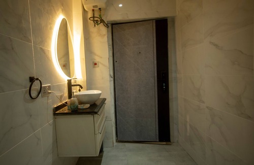 Kitchen: Enjoy a modern kitchen equipped with a washing machine, heater, double-decker fridge, oven, and a special bar area for unwinding.