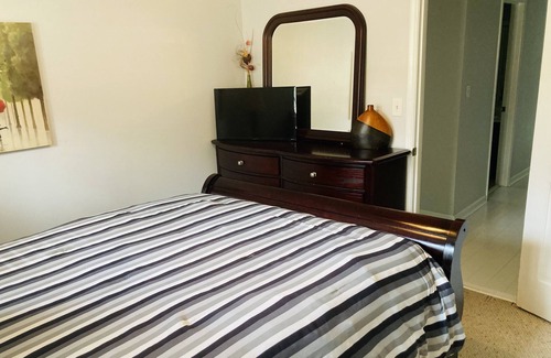 This is a fully furnished 2 bedroom 2 bathroom house on a quiet street 20 minutes south of Atlanta Airport on a private Lake Spivey, a hidden paradise in Atlanta. Fishing , kayaking. Fast Wifi. Surrounded by million dollar homes. Free airport pickup provided when I am available. Pool is not heated . Primary bedroom is locked and inaccesible for storage .