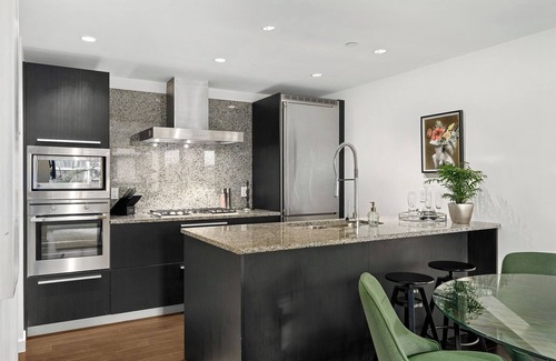 Situated in the heart of Downtown Victoria, The Luxury Executive Condo provides guests with the perfect blend of style & comfort. A part of the Falls Building, known in Victoria for its high-end condos and a stunning, unparalleled view of the western sky, the building's granite counters, gas range stoves, and deep-soak tubs may have some mistaking their suite for a five-star hotel. Moreover, guests staying have access to the building's extravagant amenities, such as an outdoor terrace, heated pool, hot tub and gym. Finally, the suite also has an in-suite washer and dryer with detergent, high-speed wifi + cable, and a secure underground parking space for guest convenience.