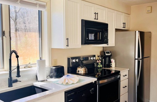 Experience luxury and comfort in this updated two-bedroom lofted condominium, offering stunning views of the picturesque valley. The master room on the 2nd floor features a luxurious King bed, while the first-floor bedroom boasts two cozy double beds, providing ample space for families, groups of friends, or couples seeking a relaxing retreat. Recently renovated in June 2022, this unique unit showcases modern upgrades including new cabinets, sleek quartz countertops, elegant flooring, a cozy gas fireplace, energy-efficient Mini Split AC units for optimal comfort, and stylish new furnishings throughout. Whether you're planning a family getaway, a trip with friends, or a romantic escape, this condo offers the perfect blend of charm, functionality, and breathtaking views for an unforgettable stay.