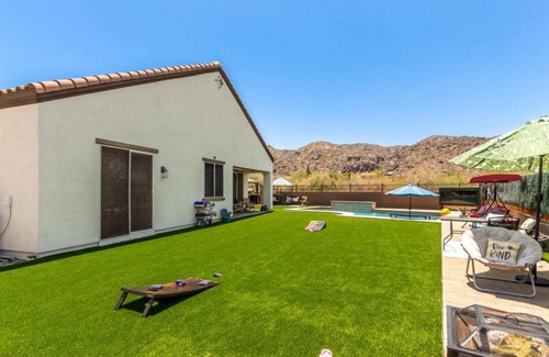 Escape to this tremendous 4-bedroom Phoenix estate. Each bedroom boasts a king, queen, or full or twin bed, ensuring a comfortable night's sleep for all guests. With 3 bathrooms featuring luxurious amenities like a bathtub and hair dryer, relaxation is guaranteed. The welcoming Den room offers a cozy sofa bed for extra sleeping space. Whether you're lounging in the pool, hot tub or suma enjoying the AC and WiFi, this home has a sand volleyball court, this terrific retreat has everything you need for a memorable stay. We hope you'll enjoy your stay at our estate.