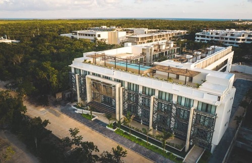 Experience true luxury in this beautifully appointed condo in one of Tulum’s most desirable locations. Soak up the Caribbean sun with a swim in the rooftop pools or unwind in the garden terrace right outside your bedroom door.