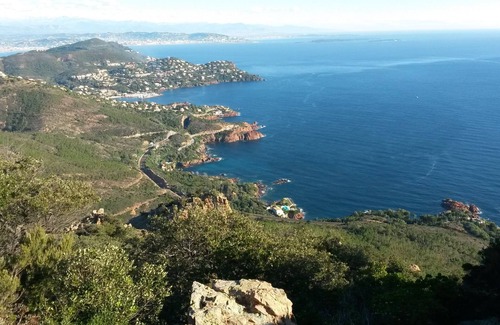 Large sandy beach at 50m, beautiful swimming pool, 180 ° panoramic sea view, the marina of La Figueirette, the Esterel massif and its red rock that winds from the Alpes Maritimes to the Var.
