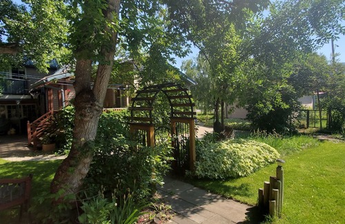 The garden suite is a bachelor style suite with a walk-in shower bathroom, queen bed, and small kitchenette. It is attached to the main house but has no interior access to the house. We hope you are able to come and relax in this beautiful space and take advantage of the spacious garden yard finding a spot to read perhaps, or playing games in the gazebo when the weather is warmer!