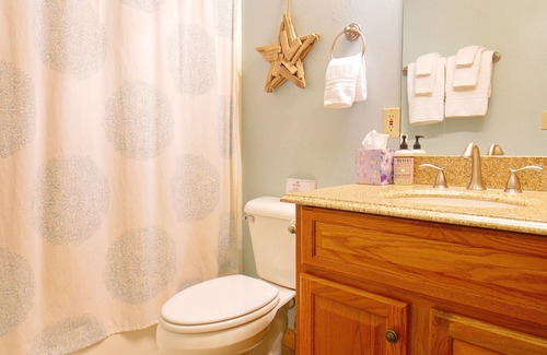 The master is located on the second floor and boasts a king bed. The bathroom is recently upgraded with a slate tile shower. Also off this level is a sunny deck with exterior seating!